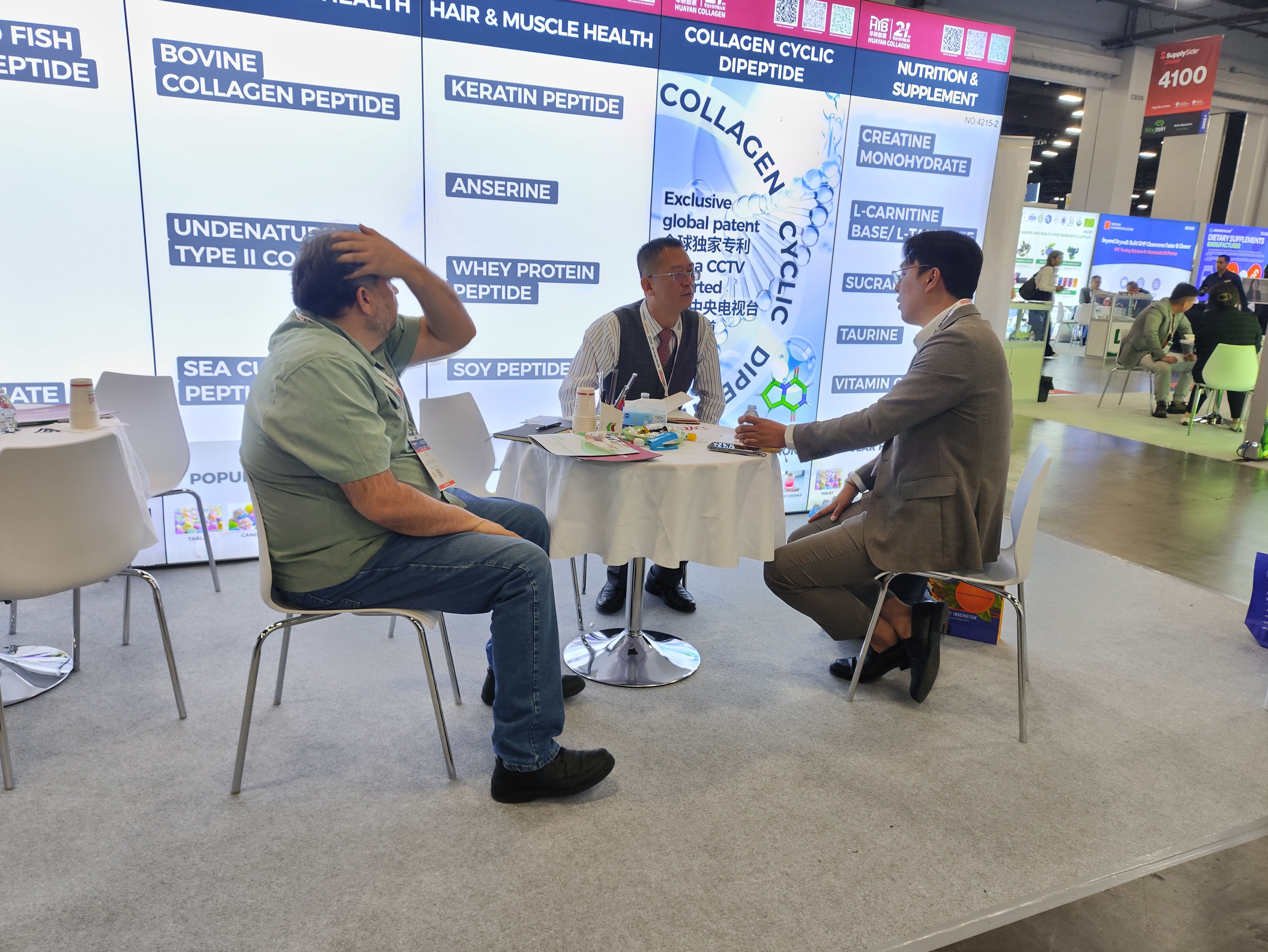 At the exhibition, Fipharm Food’s booth attracted buyers and partners from North America, Europe, Southeast Asia, and beyond. The team engaged in in-depth exchanges focusing on collagen peptides, food additives, and other key products, with their product quality and innovative solutions earning strong recognition in the international market.